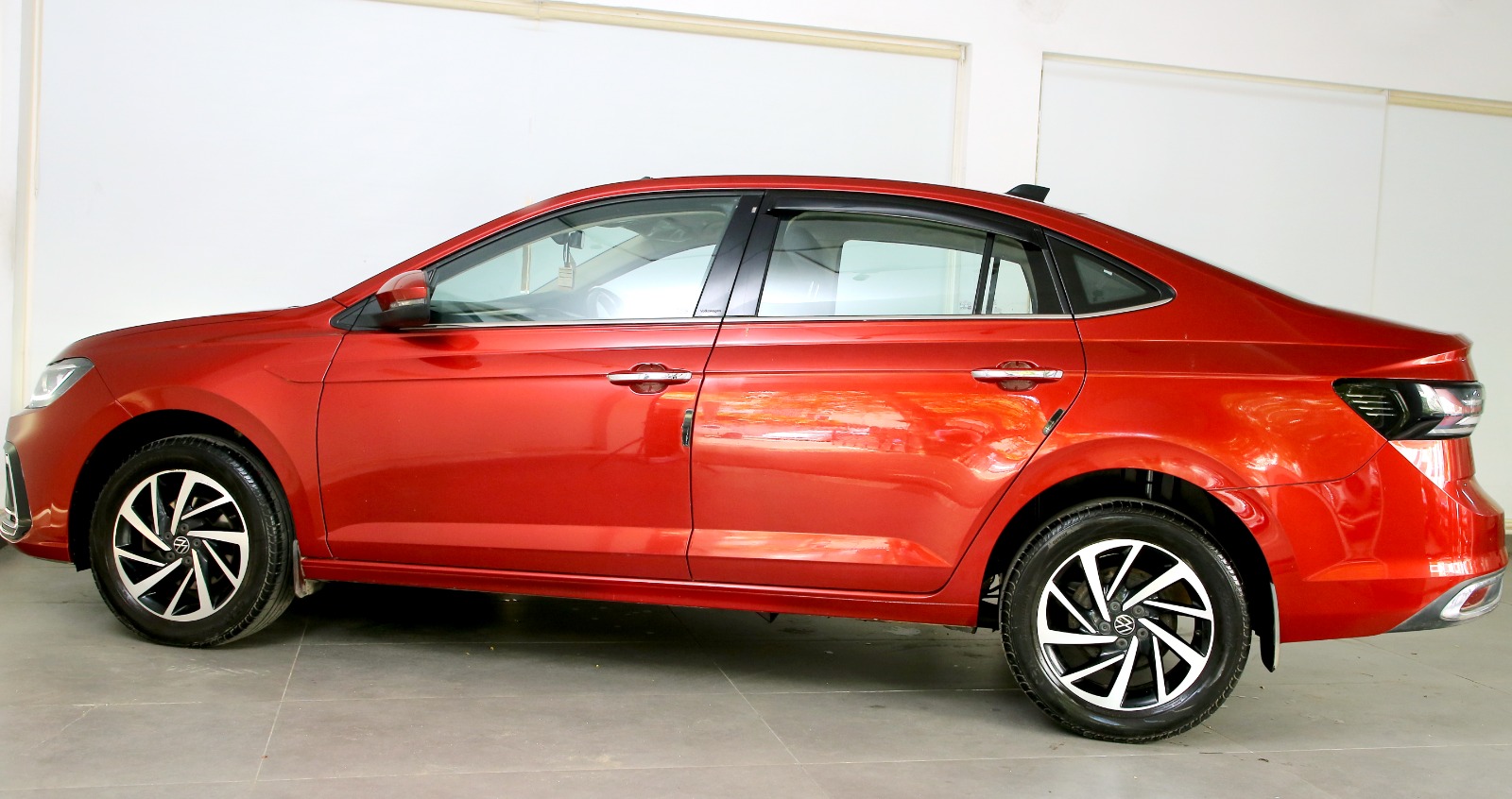 The Volkswagen Virtus Topline 1.0 TSI offers a premium, feature-rich cabin and smooth turbocharged performance, elevating daily commutes. Its refined ride quality and advanced tech make every journey more enjoyable and comfortable for used car buyers.